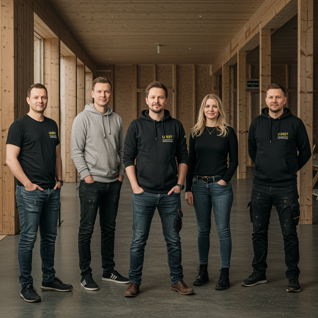 Bakom varje projekt står ett erfaret och sammansvetsat team. Våra medarbetare har bred kompetens inom både hantverk och projektledning, vilket gör att vi kan ta ansvar från planering till färdigt resultat.